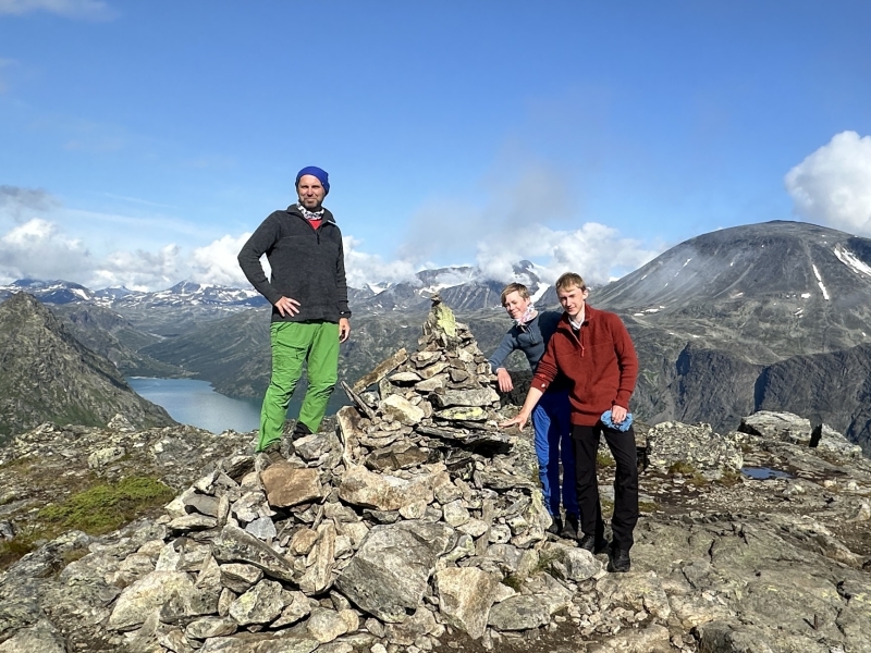 Terje, Iver og Elias på toppen av Knutshøe.