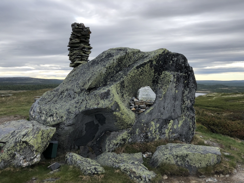 Det regnet store deler av natten. Teltet med mer var bløtt, men morgenpakkingen gikk likevel raskt og jeg kom meg av gårde tidligere enn vanlig. Terrenget var lett og dette ble dagen med høyest snitthastighet på 4,1 km/t. Det var umulig å gå feil så det tok ikke mange timene før jeg var på Hageseter. Fikk en følelse av å ha vært der før i barndommen. Stien til Hjerkinn var fryktelig grisete, den anbefaler jeg ingen.